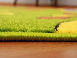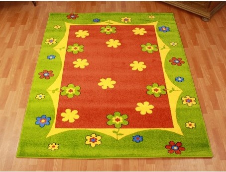 Paklājs bērnistabai ar nelielu saru augstumu no sintētiskā materiāla, kas viegli kopjams un nav alerģisks.